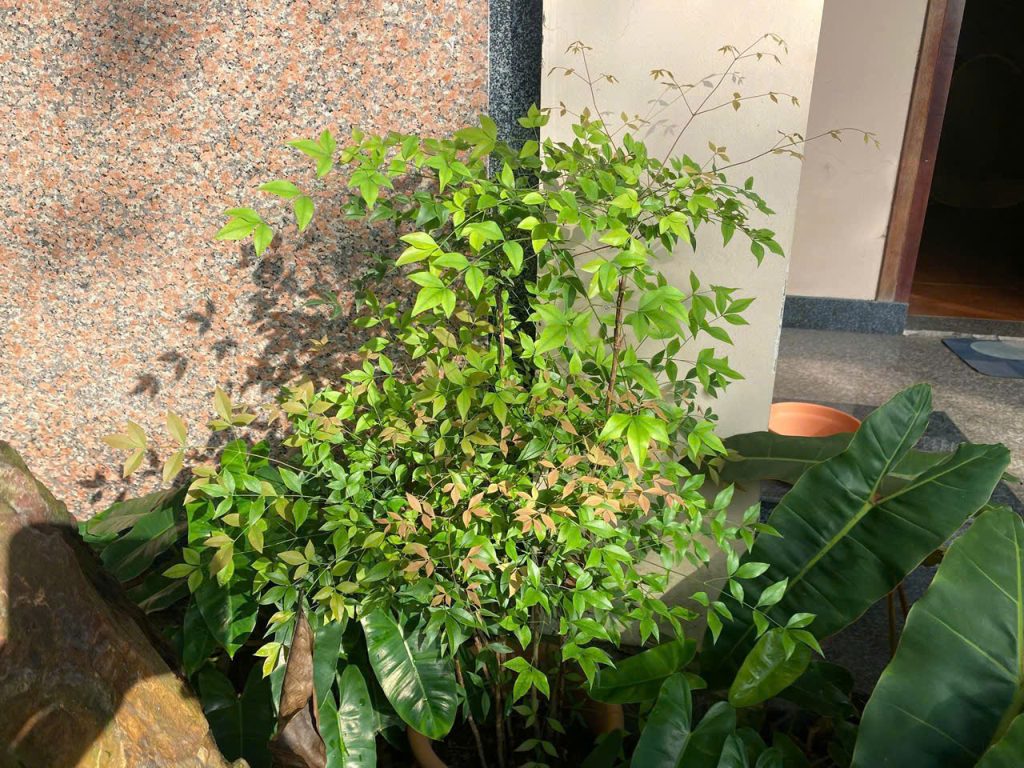 Trồng ở ban công hoặc hiên nhà, thích hợp bố trí cảnh quan sân vườn. Hình dưới là những cây nam thiên trúc được trồng thuần dưỡng tự nhiên tại vườn nhà Pamoda, đang rất mạnh khỏe và tán lá xum xuê, đổi màu rất đẹp.